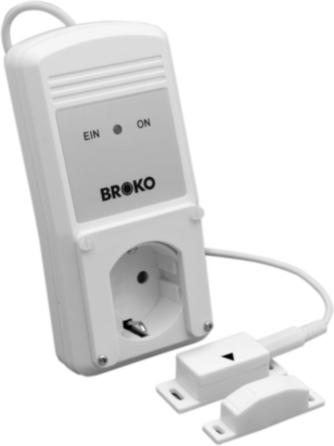 El controlador se monta prácticamente como un enchufe intermedio entre el tomacorriente y la campana extractora. El cable del sensor tiene 6 m de largo, donde el vigilante de la ventana (emisor + contacto magnético) está fijado en la ventana. El sistema de extracción solo se enciende cuando se ha interrumpido el contacto magnético en la ventana, es decir, cuando la ventana se ha abierto o inclinado.
