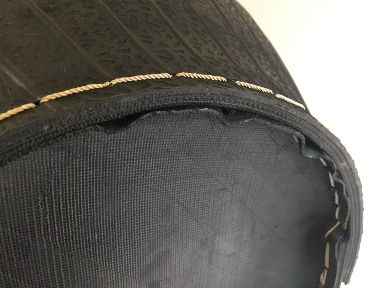 Ümbertöödeldud puidust korv, mis on valmistatud taaskasutatud rehvidest/kummidest, valged õmblused 45cm