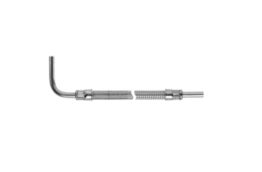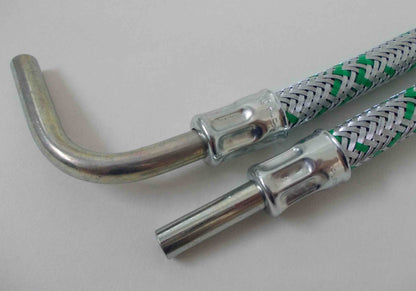 Ici, le tuyau résistant à l'huile est équipé d'un embout droit d'un côté et d'un coude de l'autre côté.
