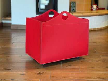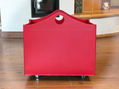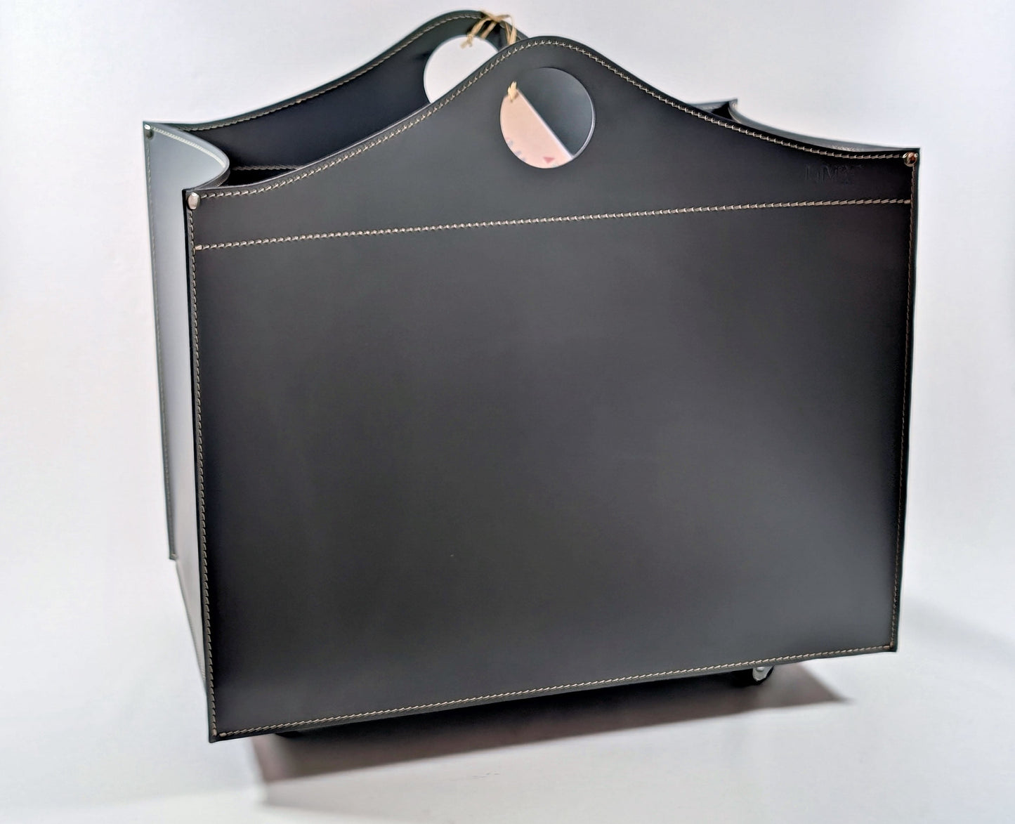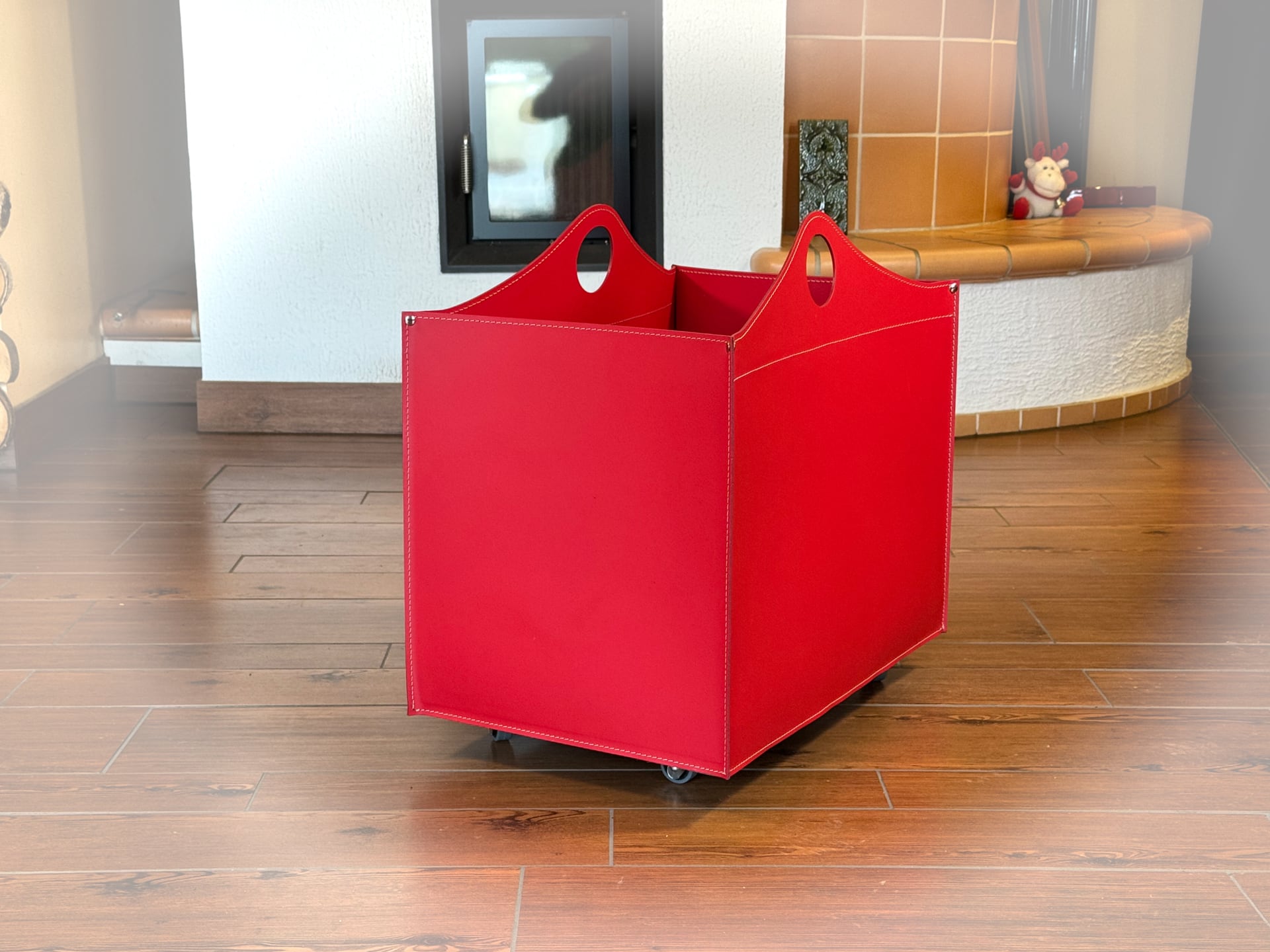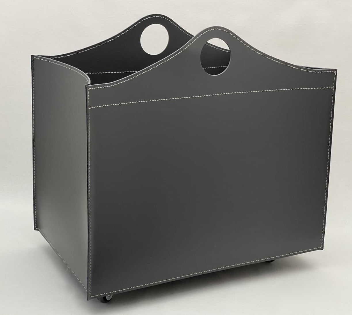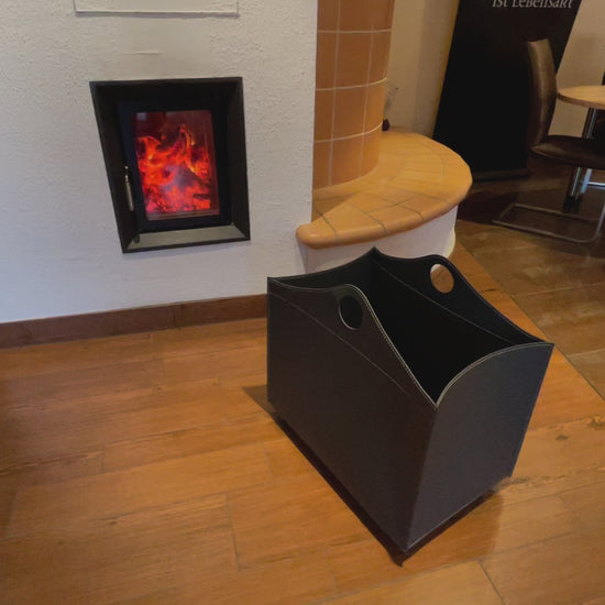 Robusto cuoio a doppio strato, cuciture in pelle distintive e ruote gommate creano un cesto in pelle unico per la vostra legna o altri oggetti. I rivetti aggiuntivi sugli angoli superiori garantiscono una lunga durata.