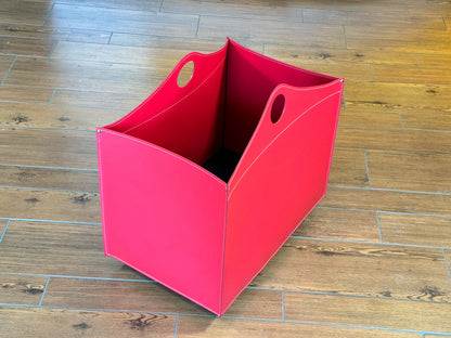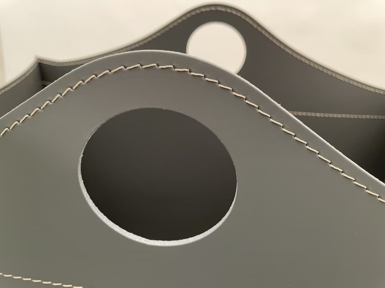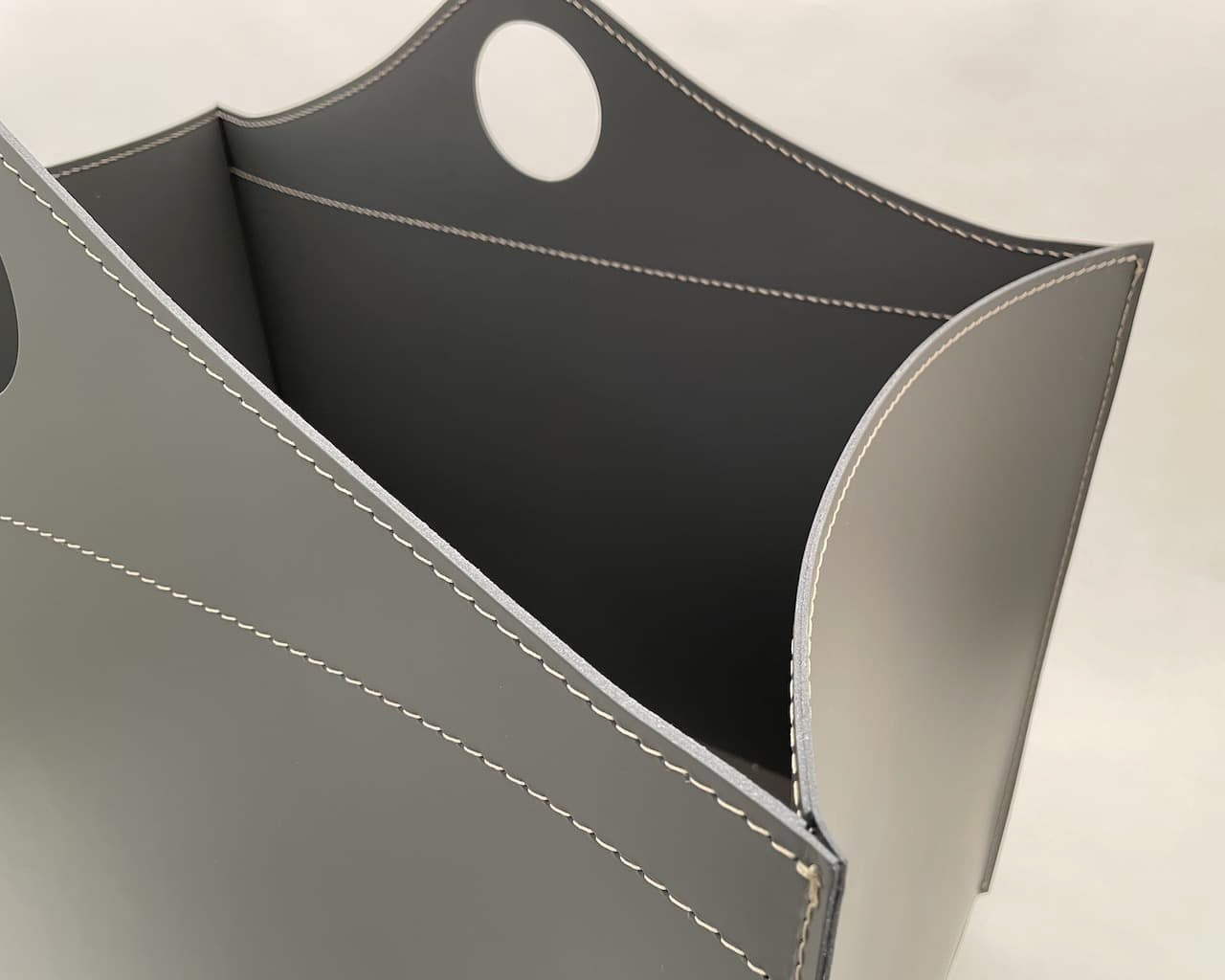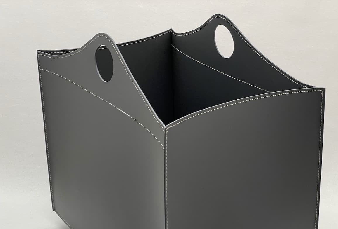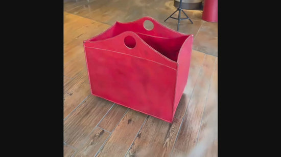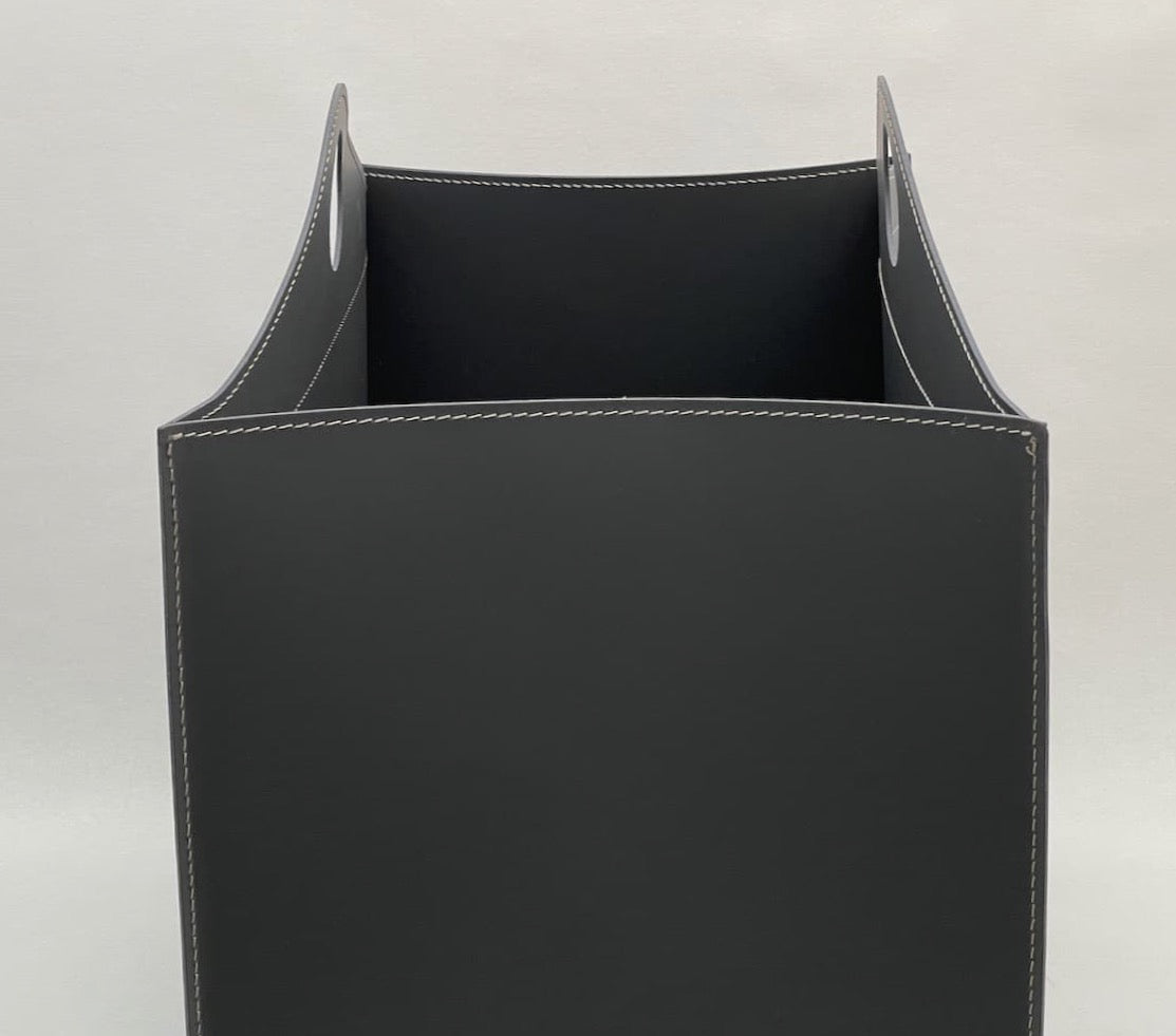 Robusto cuoio a doppio strato, cuciture in pelle distintive e ruote gommate creano un cesto in pelle unico per la vostra legna o altri oggetti. I rivetti aggiuntivi sugli angoli superiori garantiscono una lunga durata.