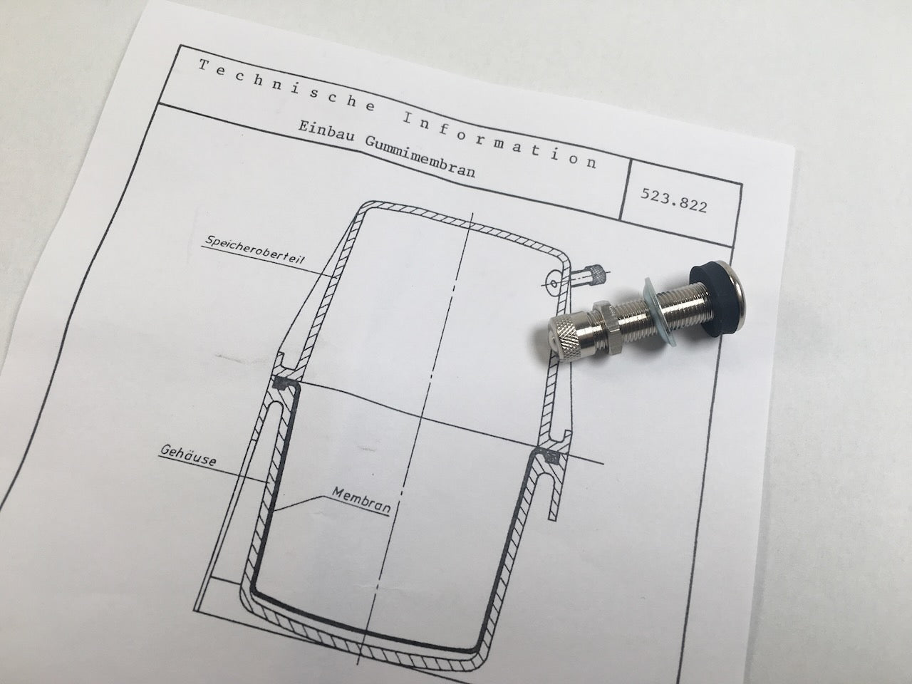 Il pezzo di ricambio "Membrana a rotolamento per pompa accumulatrice di pressione" è destinato alla successiva messa in funzione da parte vostra, qualora durante il controllo di riparazione risultasse usurato.