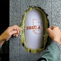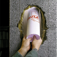 I raccordi del camino possono essere sigillati in modo ordinato utilizzando il kit di sigillatura per camini. Il rotolo di cartone viene fissato all'interno del camino con elastici e barre di fissaggio. La malta di riparazione può quindi essere applicata con cura sul cartone. Assicurarsi che il collegamento sia corretto ai lati del foro. Se il foro è più grande del cartone utilizzato, 200 × 200 mm, quindi scegli uno degli altri set di chiusura con 310 × 310 mm o 390 × 390 mm.