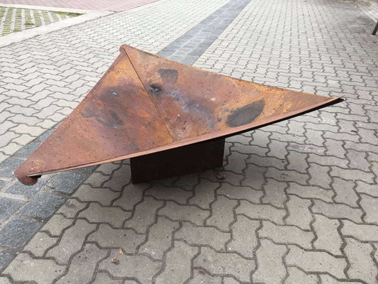 Trójkątna misa ogniowa z prostym systemem wtykowym, stal surowa