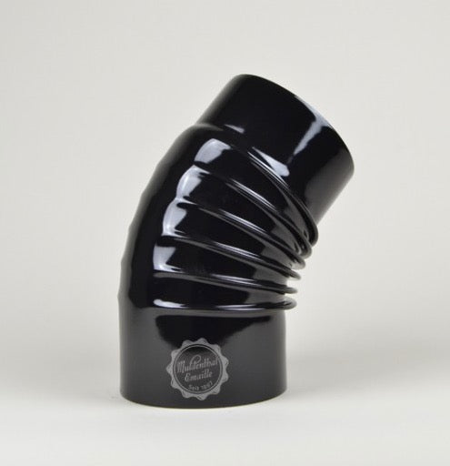 Kolano rury piecowej z kątem 45° (bez drzwi do czyszczenia), z wciągniętym końcem, dzięki czemu kolana mają blokadę w połączeniu wtykowym. Kolano rury piecowej jest emaliowane na brązowo wewnątrz i na zewnątrz bez widocznego rowka.