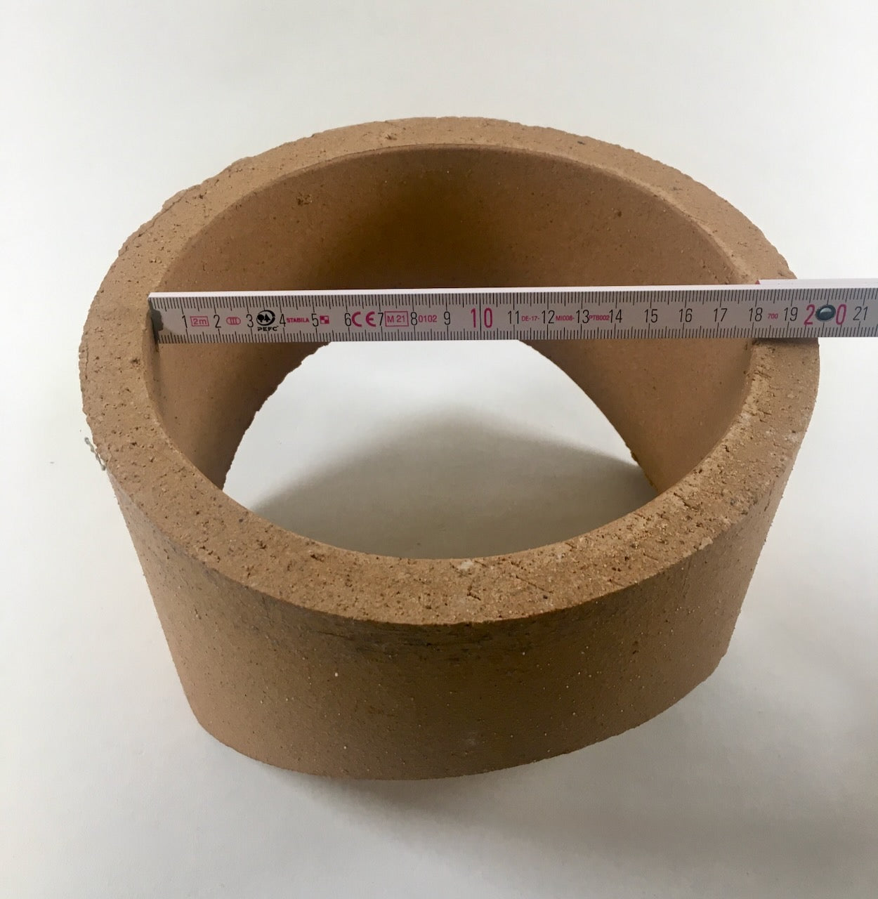 - Rozmiar tego wycięcia = kołnierz przyłączeniowy z szamotu – rura + 2 cm