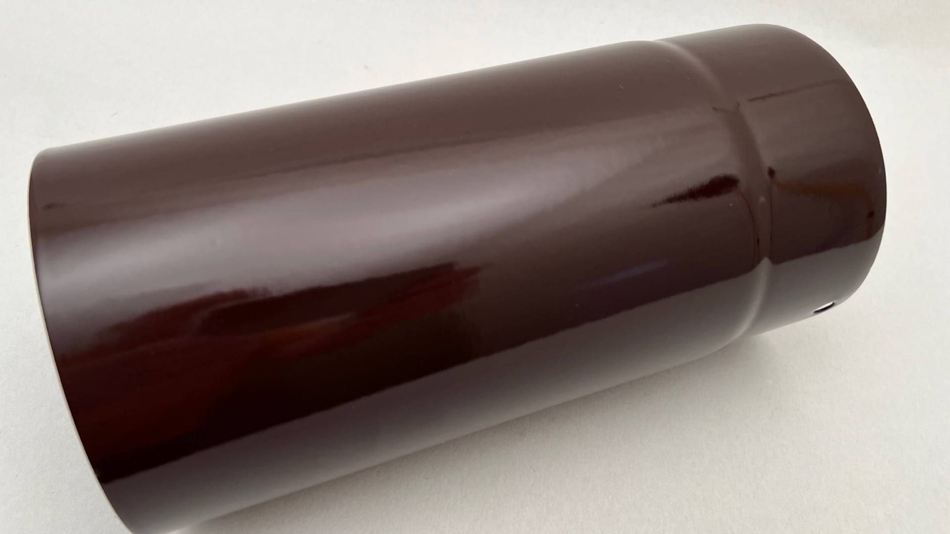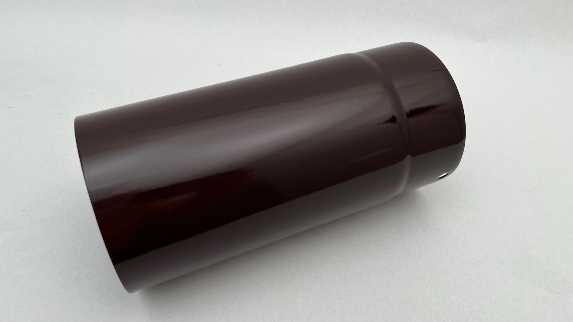 Brązowe emaliowane rury piecowe są emaliowane zarówno wewnątrz, jak i na zewnątrz. Rury piecowe są bez widocznego rowka, z końcem wciągniętym (ok. 5 cm długości). Mają zatem blokadę w swoim połączeniu wtykowym.