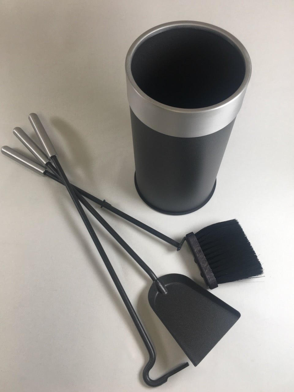 Táto súprava na krb spája dizajn, funkčnosť a poriadok – štýlový nevyhnutný doplnok pre každého majiteľa krbu.